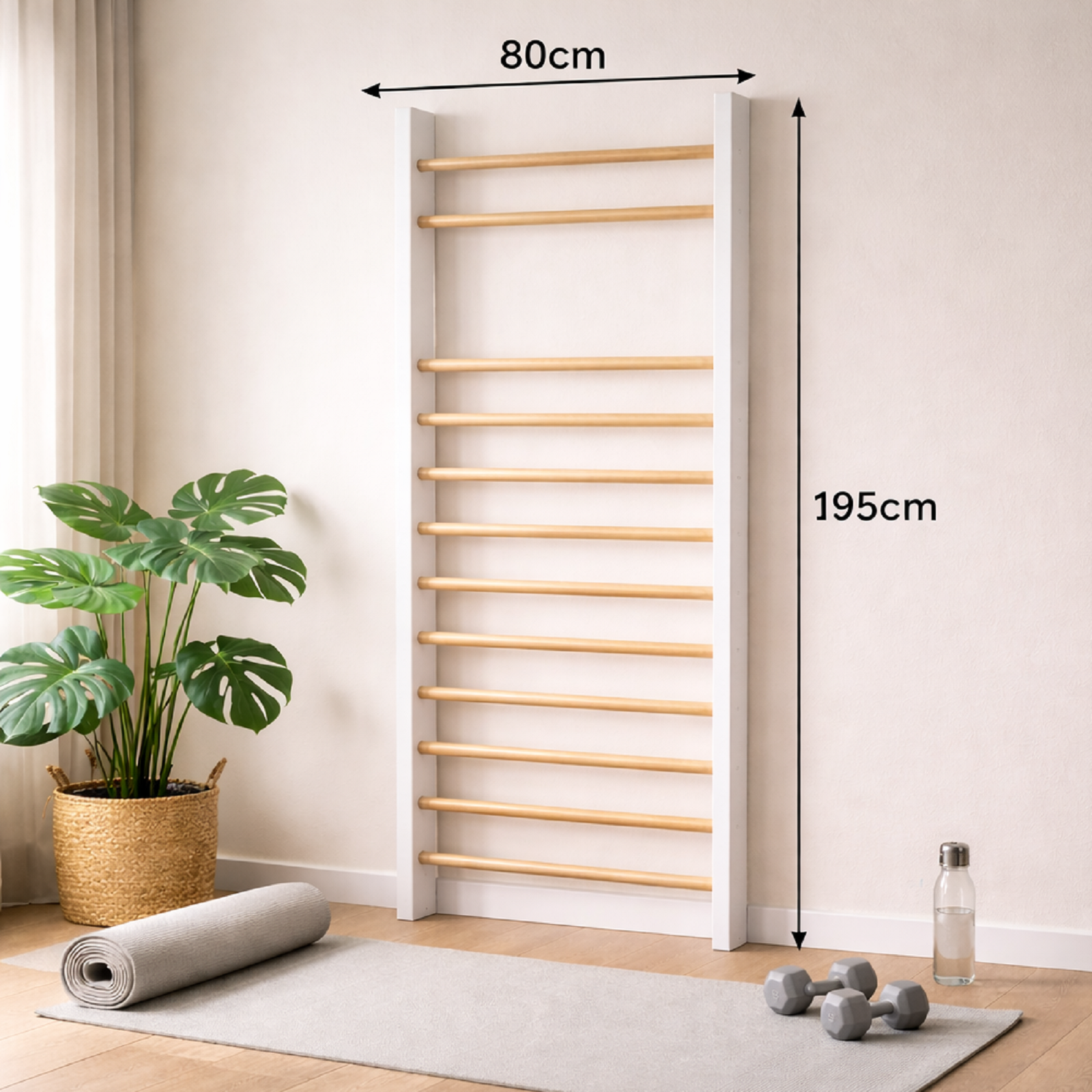 Die QLS Gymnastikleiter unterstützt gezieltes Krafttraining, Beweglichkeitsübungen und Balanceübungen. Dank der glatten Holzoberfläche der Sprossen ist ein sicherer Griff gewährleistet, gleichzeitig ist das Gerät pflegeleicht und langlebig. Ob für Heimtraining oder einfache Fitnessübungen – die Gymnastikleiter ist ein praktisches und funktionales Sportgerät. Mit der QLS Gymnastikleiter erhalten Sie ein langlebiges, vielseitiges Trainingsgerät, das sich optimal für verschiedene Trainingsarten eignet und den Alltag durch effektives Heimtraining bereichert.