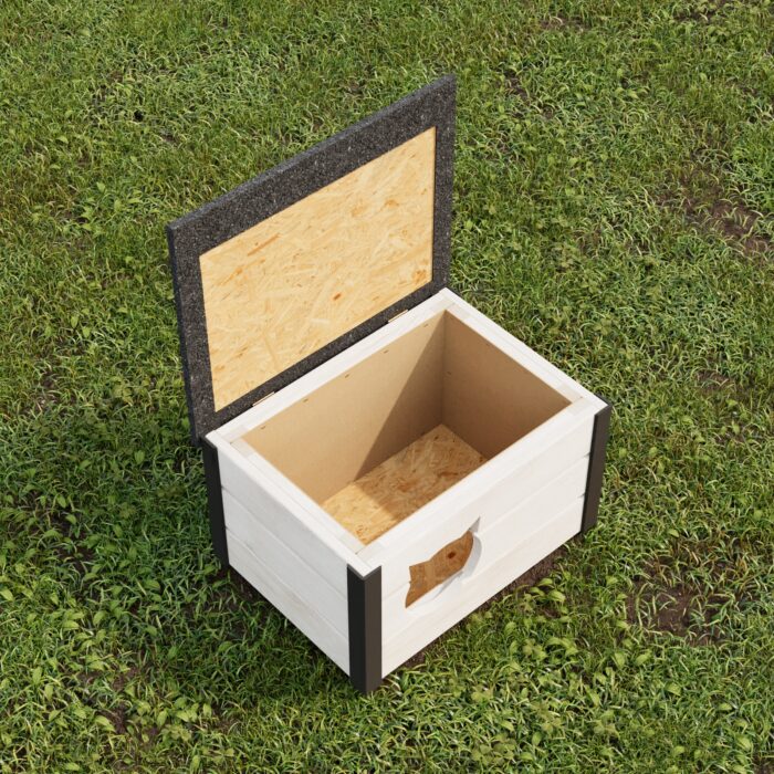 - Der höchste Schutz vor Kälte und Nässe für Ihr Haustier: Zusätzlichen Schutz bieten ein Boden aus wasserfesten OSB3-Platten und die Außenimprägnierung der Wände mit Holzschutzmittel
