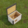 - Außenmaße: entlang der Dachkontur 57×47 cm, Gesamthöhe 33 cm
